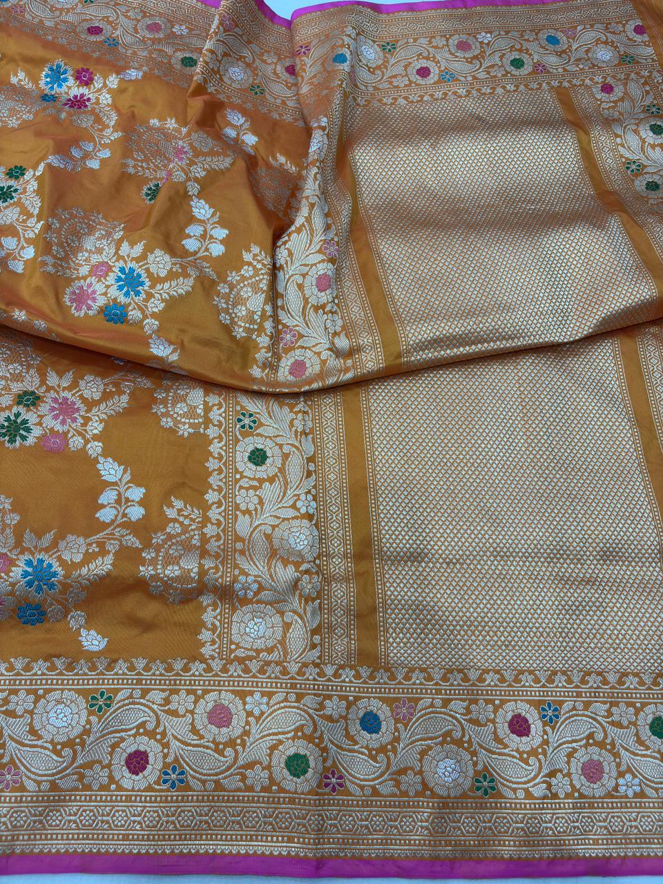 Mustard Gold Pure Katan Silk Banarasi Handloom Handwoven Kadhwa Jangla Sarees