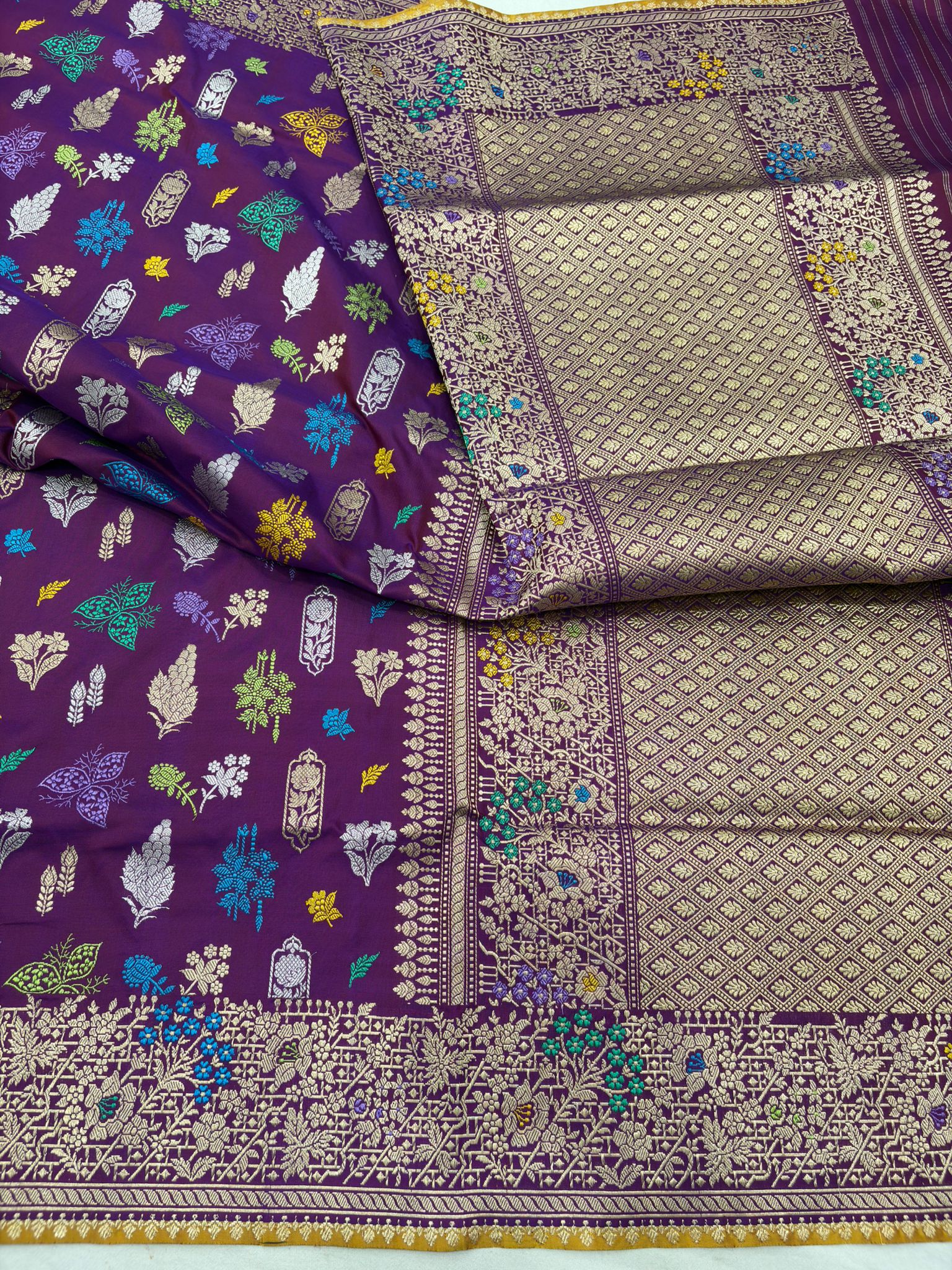 purple pure katan silk banarasi handloom handwoven kadhwa sarees,